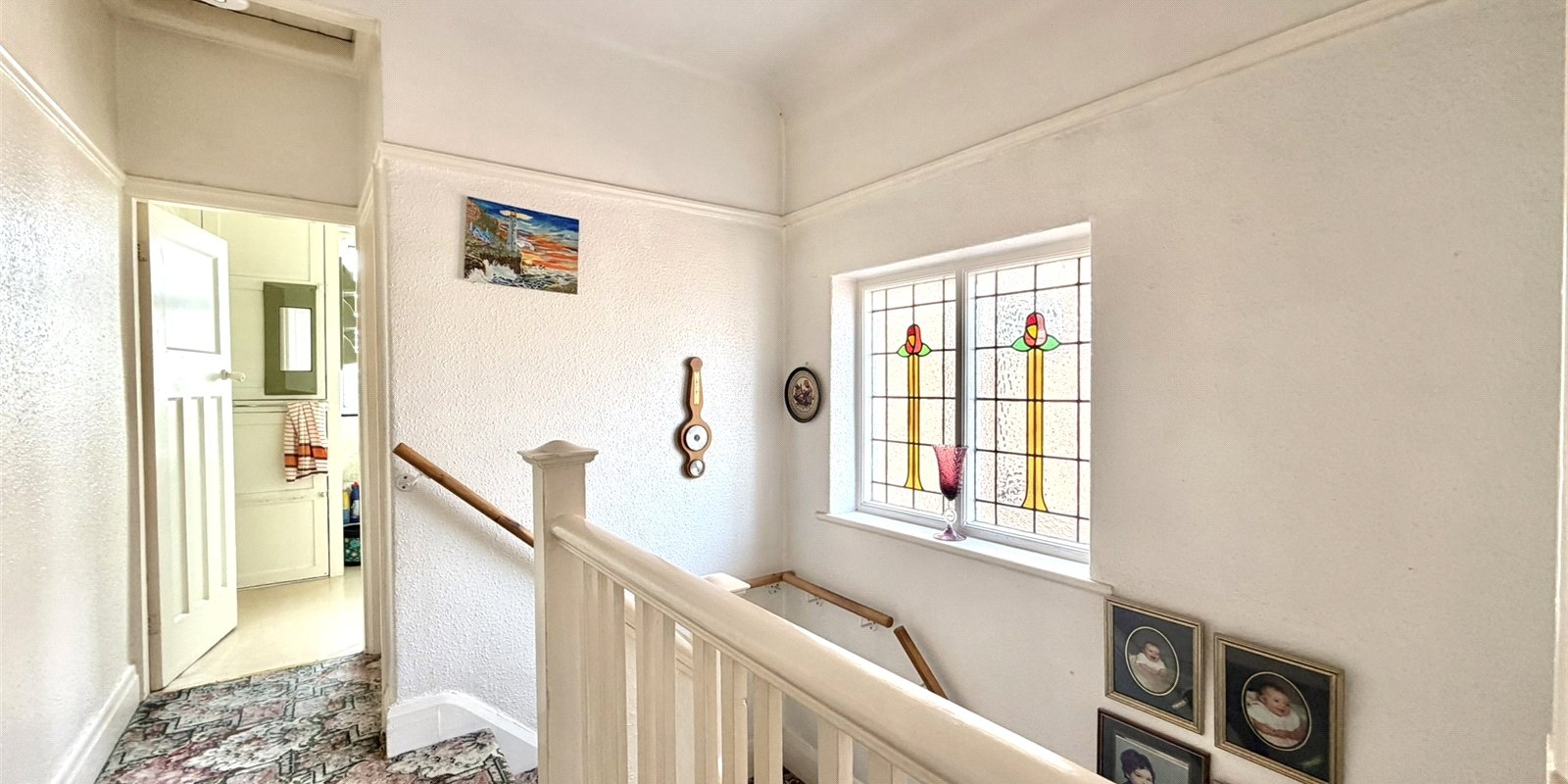 This charming property retains a wealth of original features, including beautiful leaded stained glass windows, giving a nod to its period heritage. The accommodation begins with a generous entrance hallway, leading through to two well-proportioned reception rooms, ideal for both family living and entertaining, along with a kitchen to the rear.