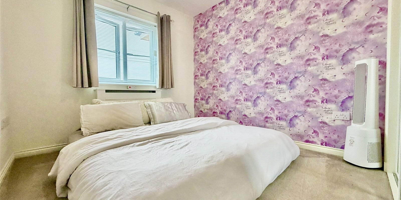 The property boasts a generous layout with a spacious entrance hallway leading to a bright and airy lounge featuring a Juliet balcony, perfect for relaxing or entertaining.