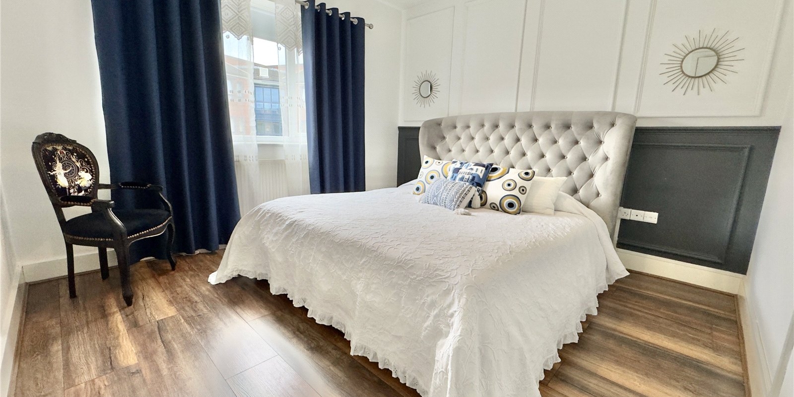 To the first floor, the property offers two generously proportioned double bedrooms along with a versatile third single bedroom, currently utilised as a walk-in wardrobe. These rooms are served by a sleek and modern family bathroom, finished to a high standard in keeping with the contemporary design of the home.