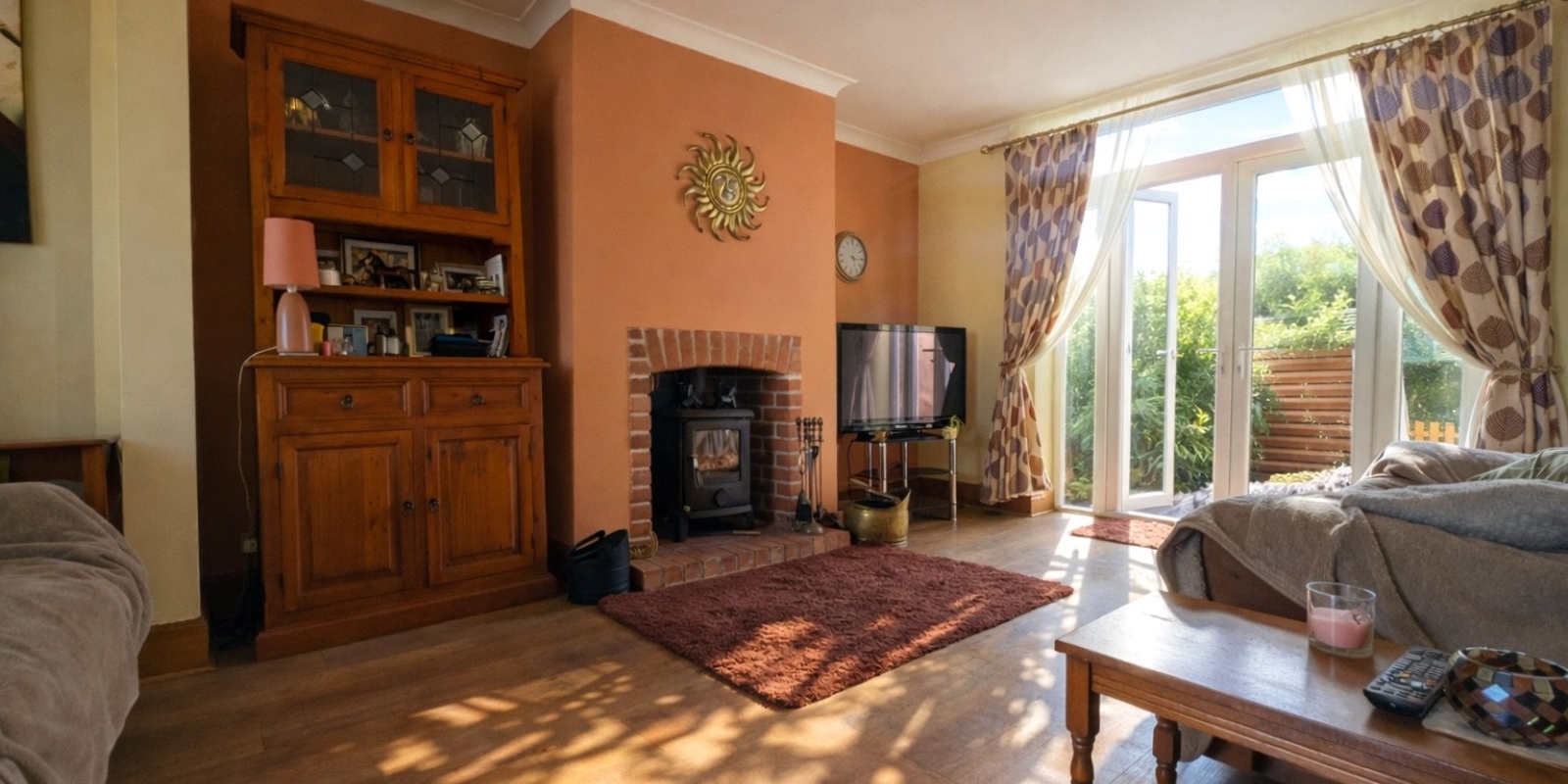 The ground floor boasts a well-proportioned lounge featuring a charming log burner, creating a warm and inviting focal point—perfect for cosy evenings. The lounge flows seamlessly into a generous dining room, ideal for entertaining, while the kitchen sits to the rear with pleasant views over the garden.