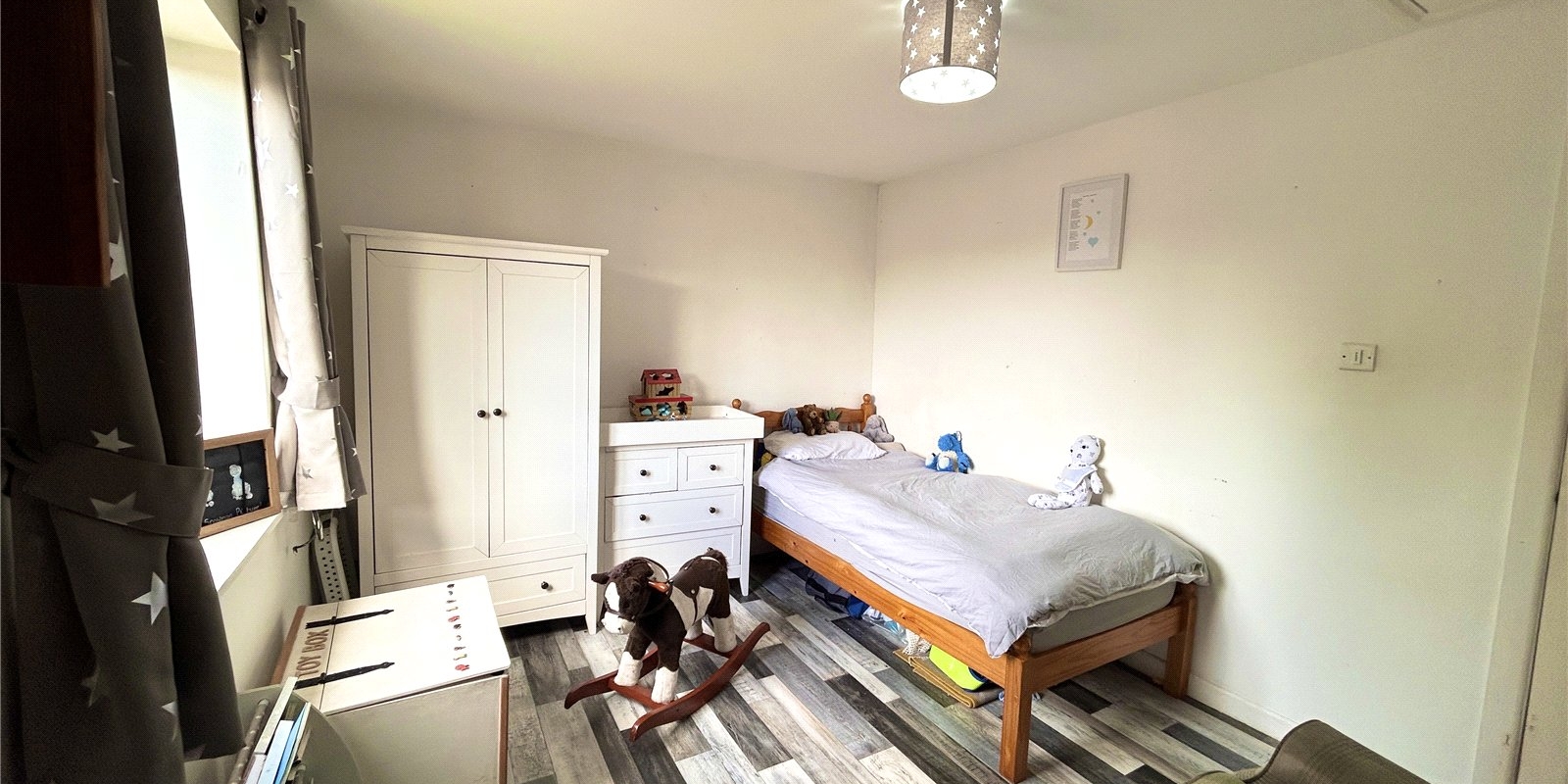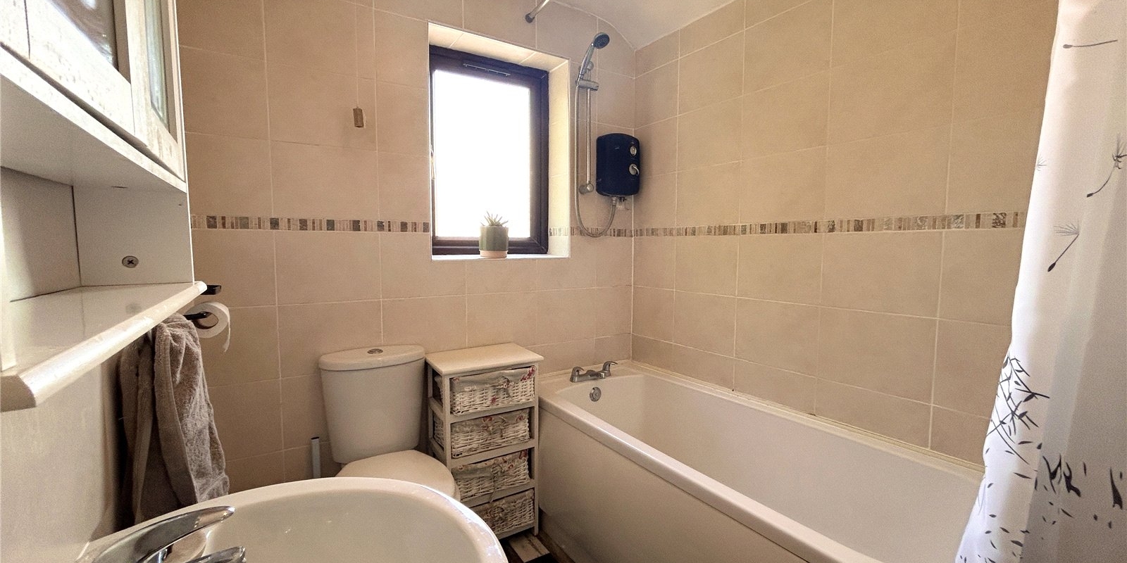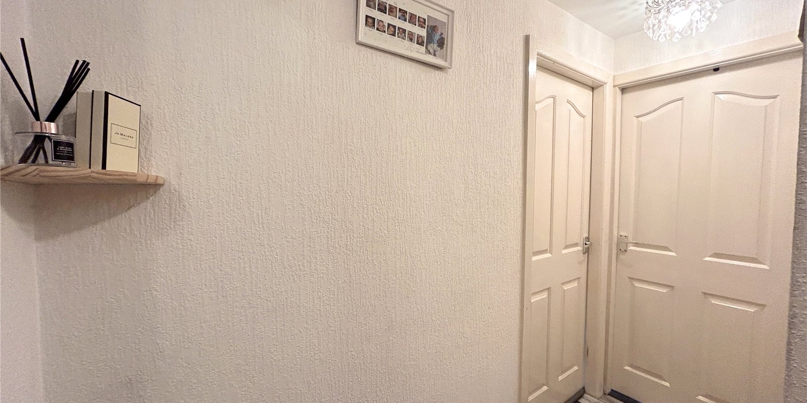 To the first floor, you’ll find two well-proportioned double bedrooms, with the master benefiting from built-in storage, along with a modern white three-piece bathroom.