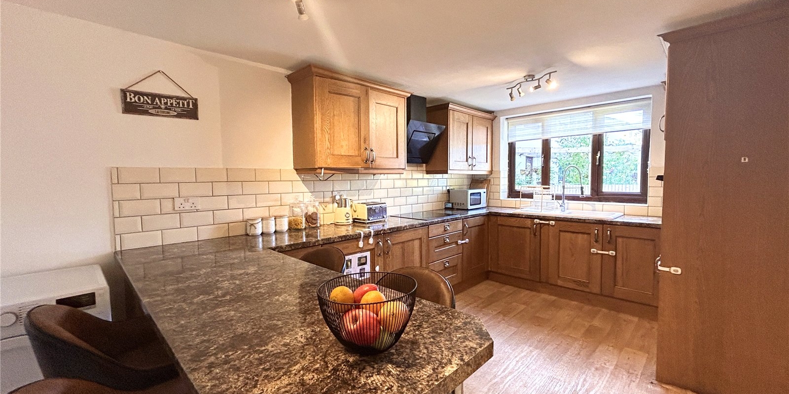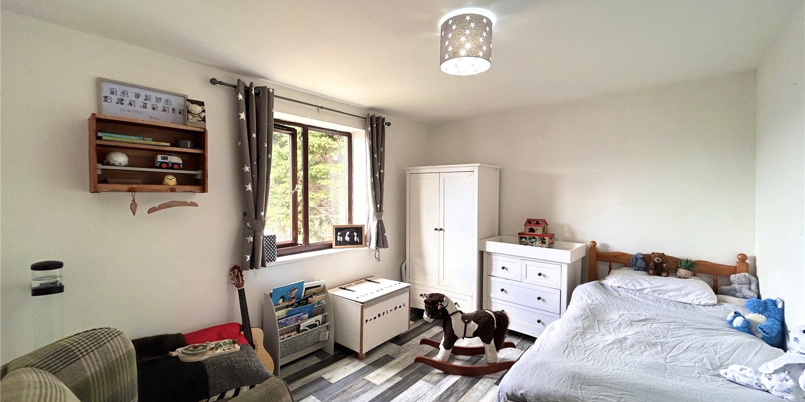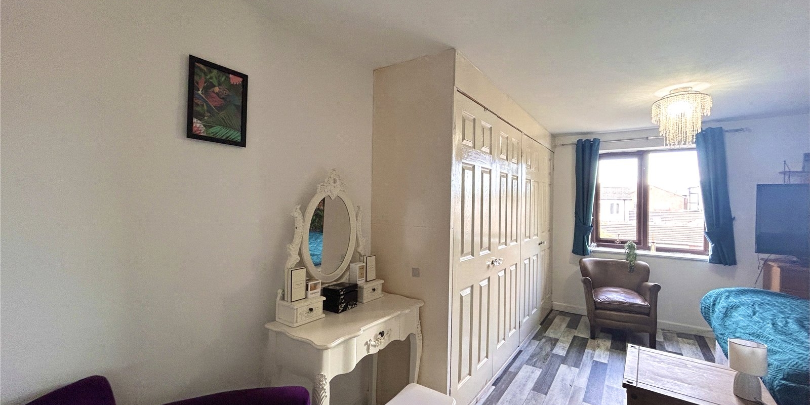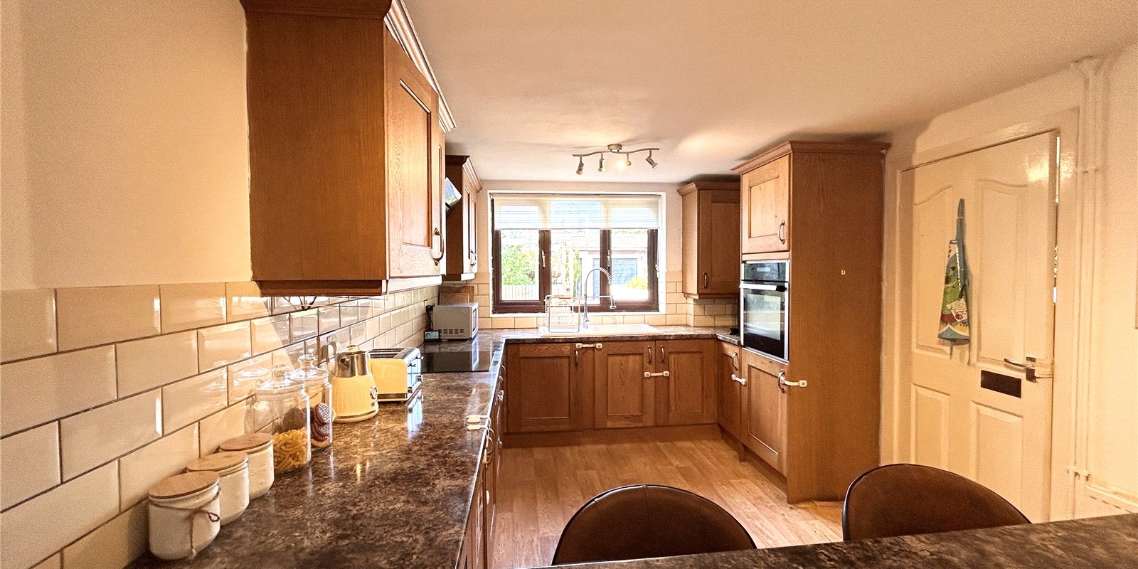To the first floor, you’ll find two well-proportioned double bedrooms, with the master benefiting from built-in storage, along with a modern white three-piece bathroom.