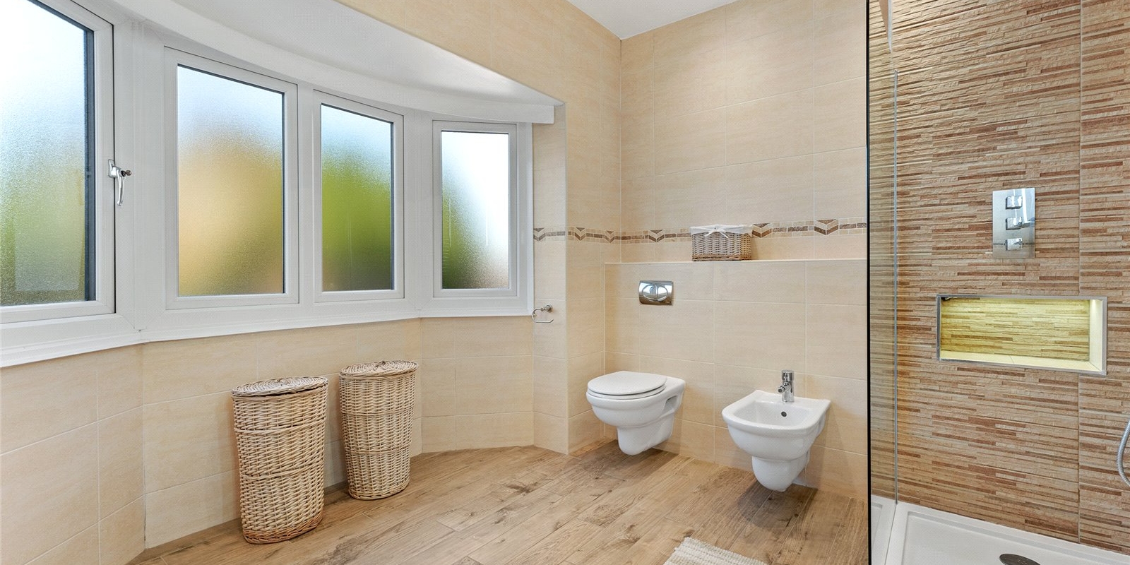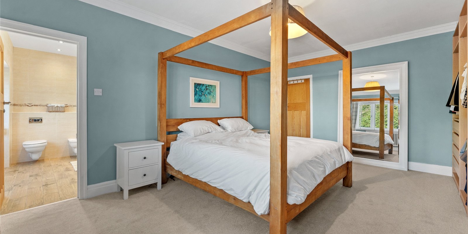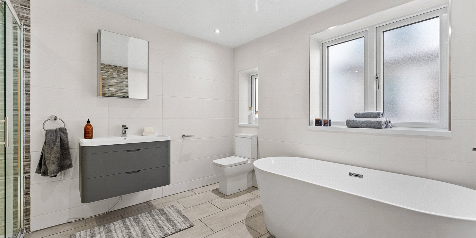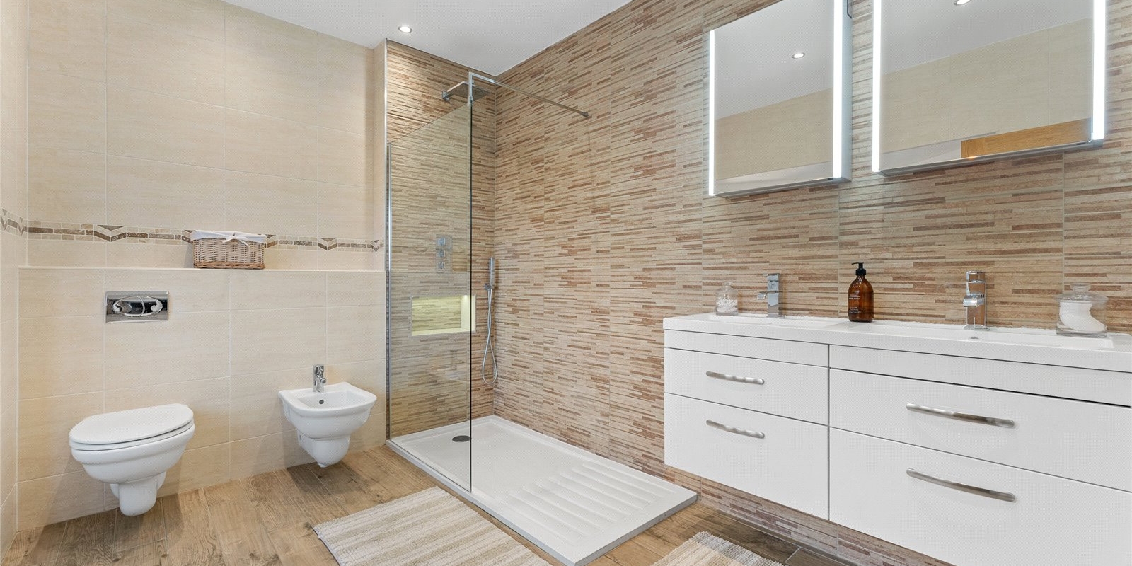 The accommodation allows for flexible family living across the upper floors. The main bathroom is a particular highlight, featuring a luxurious free-standing bath that adds a sense of boutique hotel style. The master bedroom presents an exquisite and generously sized en-suite, complete with a double shower and ‘his and hers’ basins.