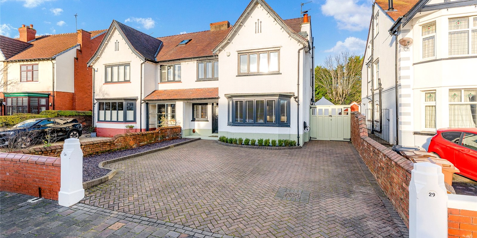 At the front of the property you are greeted with a large driveway, capable of parking multiple cars comfortably. This home also offers an easily accessible 7w EV charger at the front of the house.