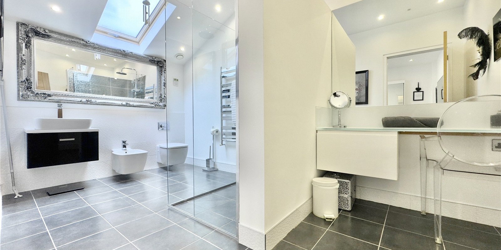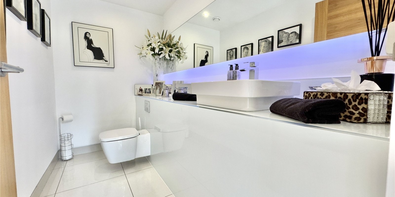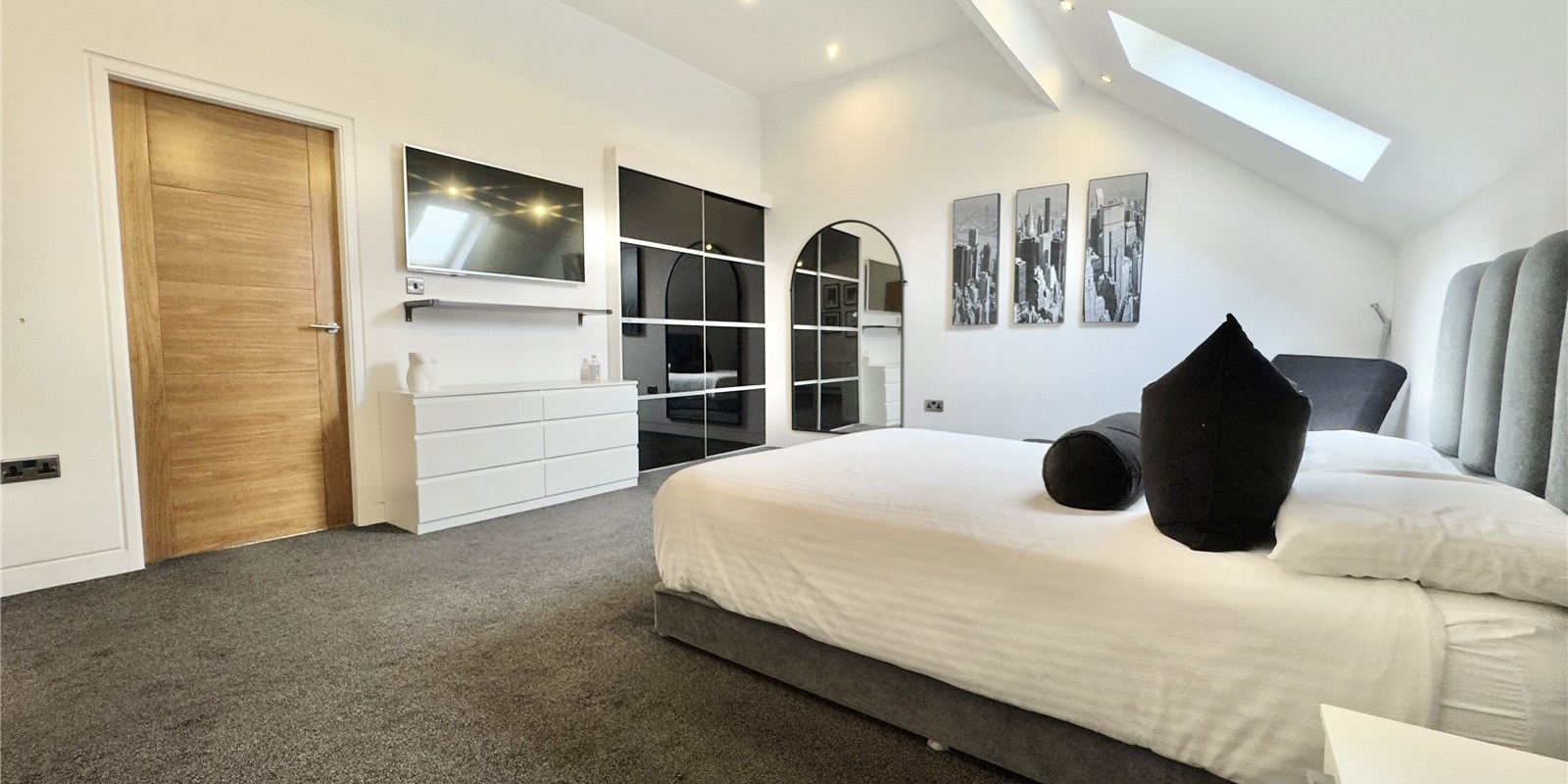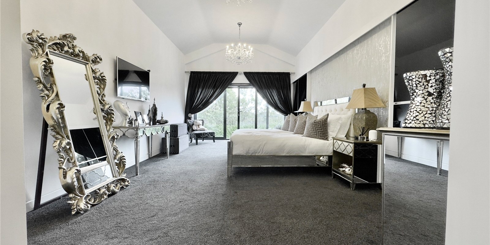 Each of the five bedroom suites is individually designed, complete with en-suite bathrooms and bespoke walk-in wardrobes, ensuring luxurious private accommodation. Externally, landscaped gardens, a garage and secure gated parking complete this outstanding property.