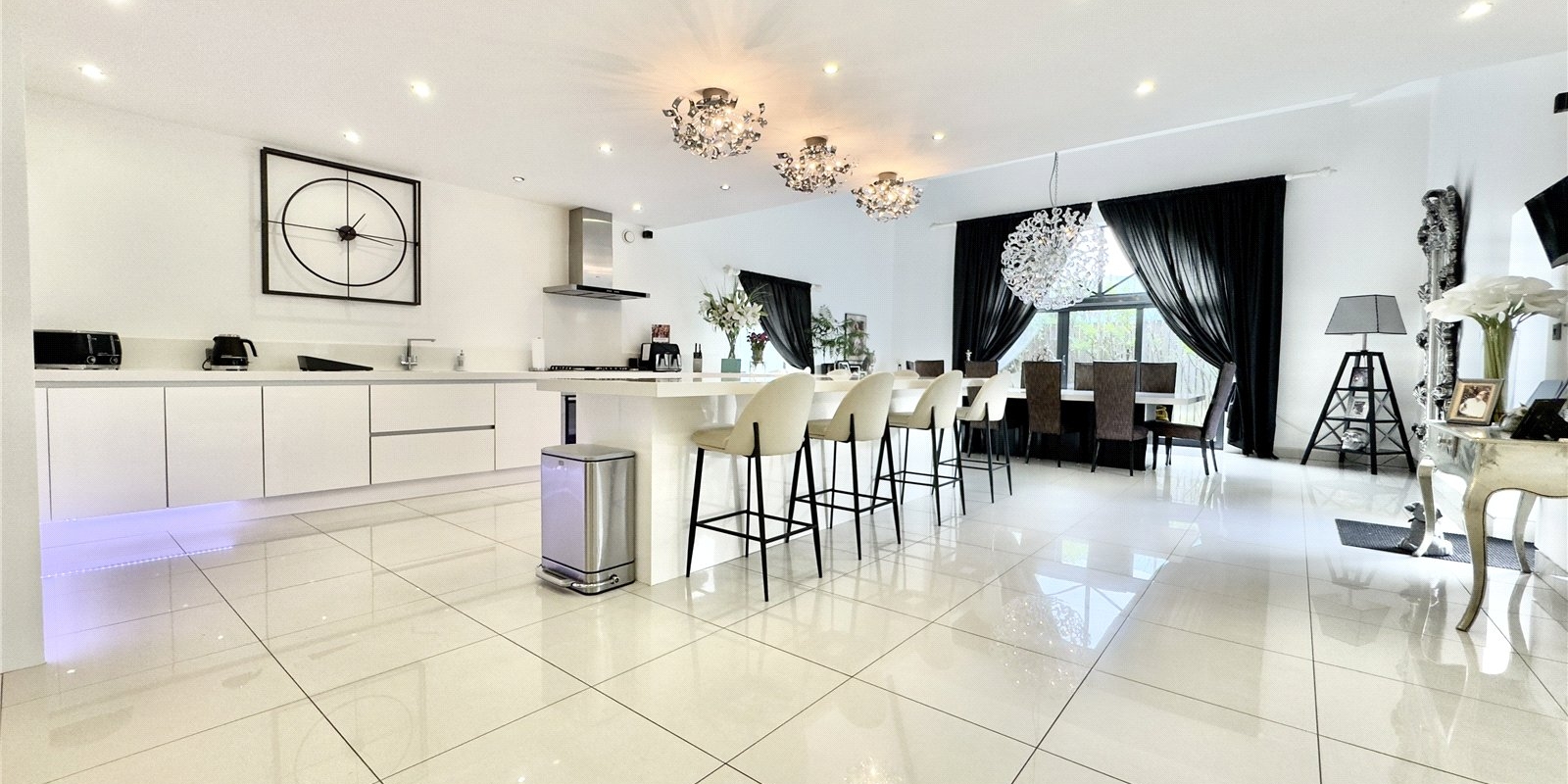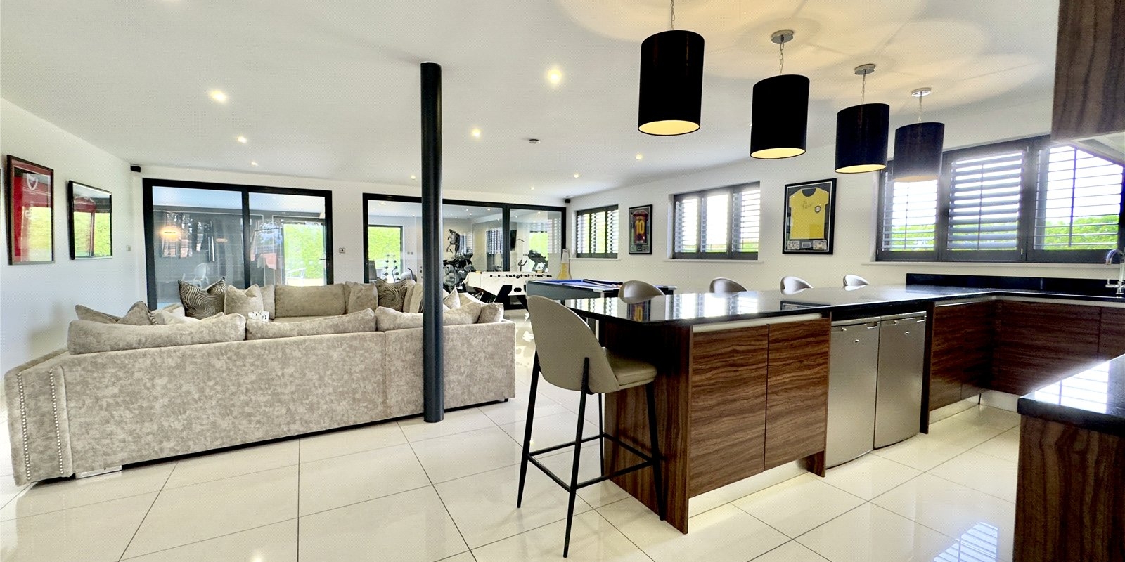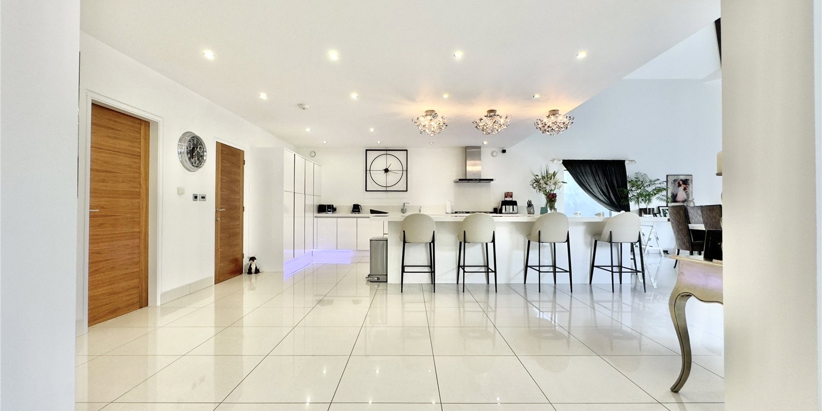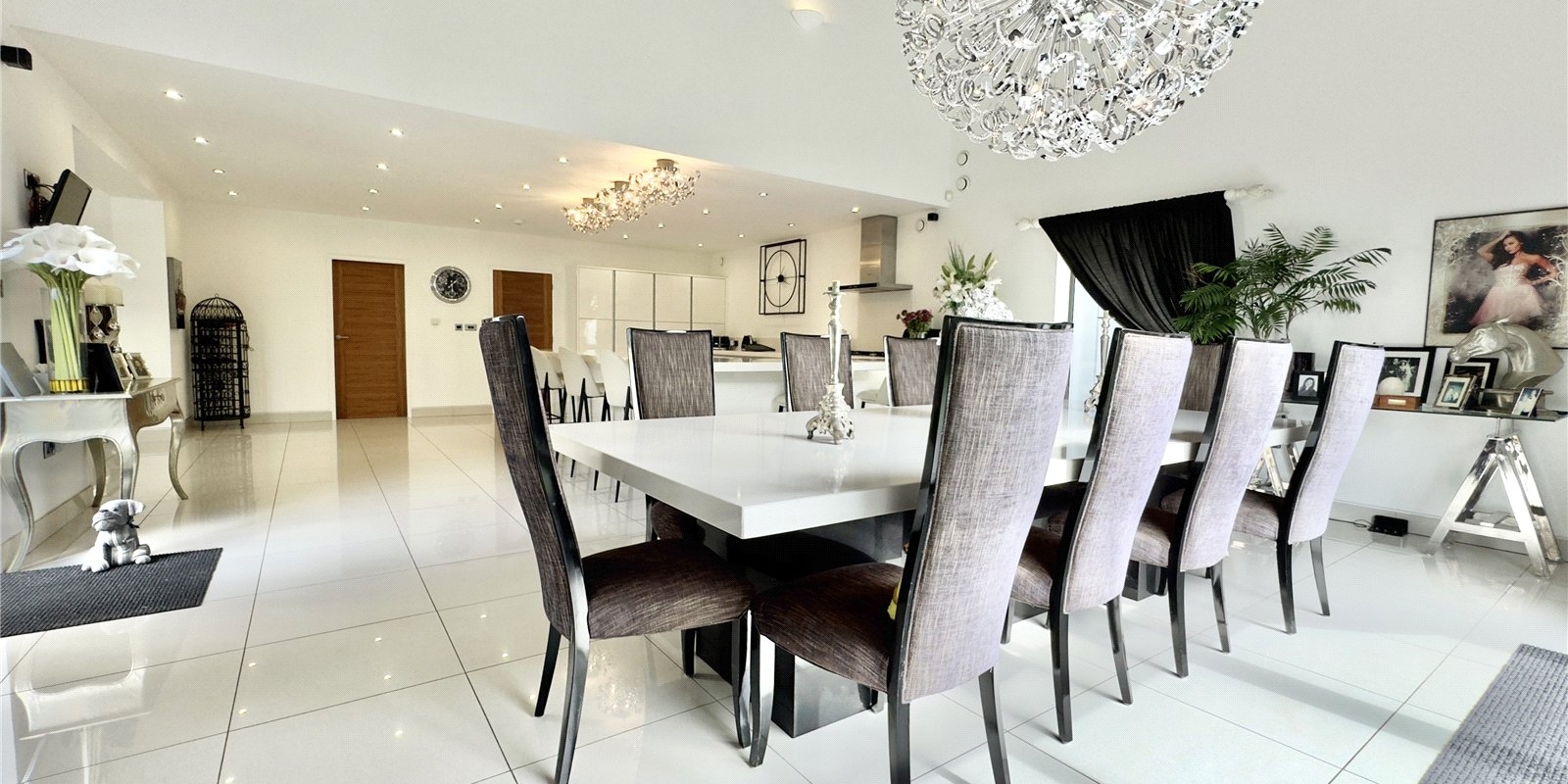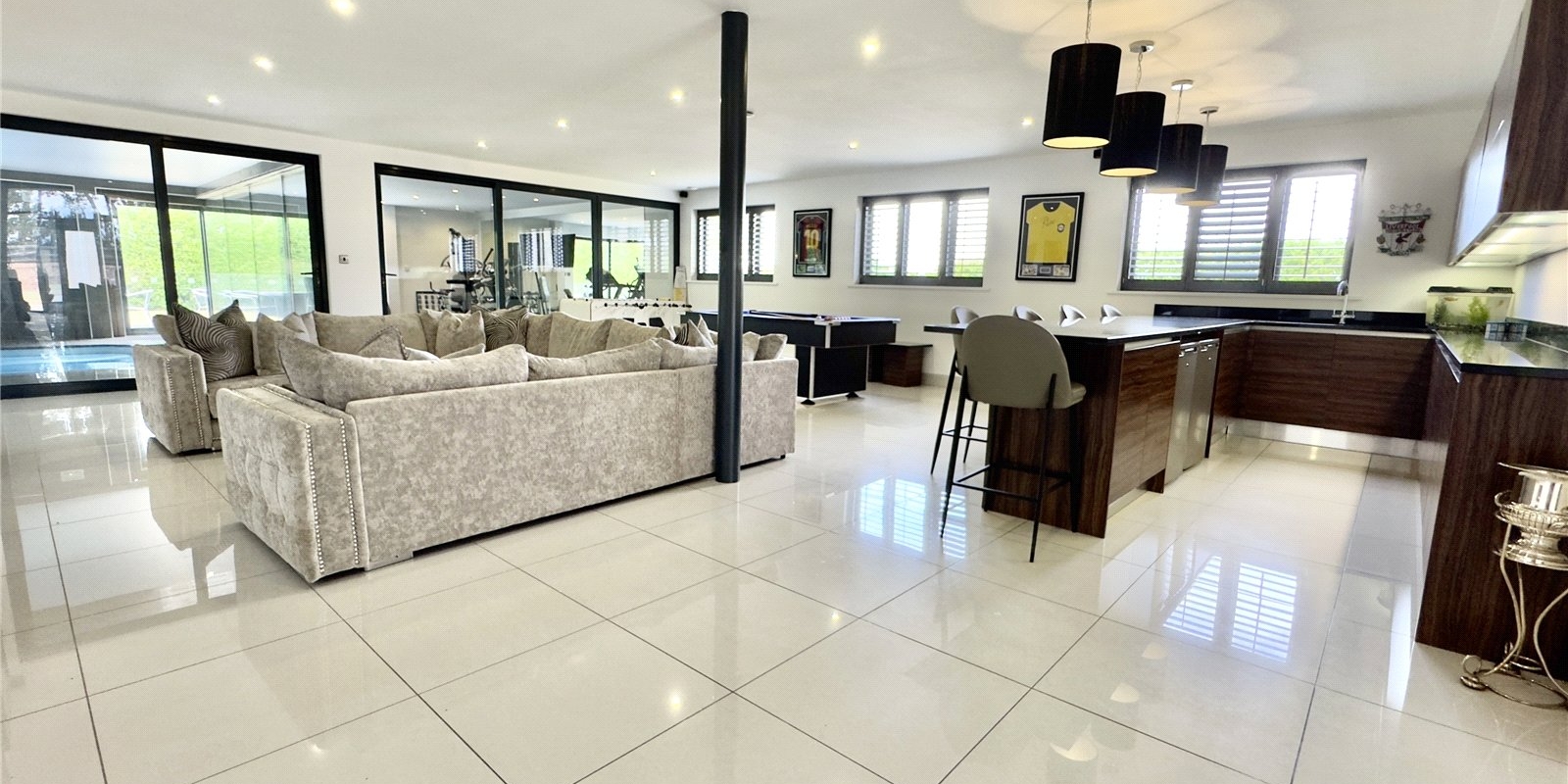 This remarkable residence is designed for both grand entertaining and relaxed family living. The expansive entrance hallway sets the tone for the home, leading to a spectacular open-plan kitchen and dining area, perfectly positioned to open out to the private pool terrace.
