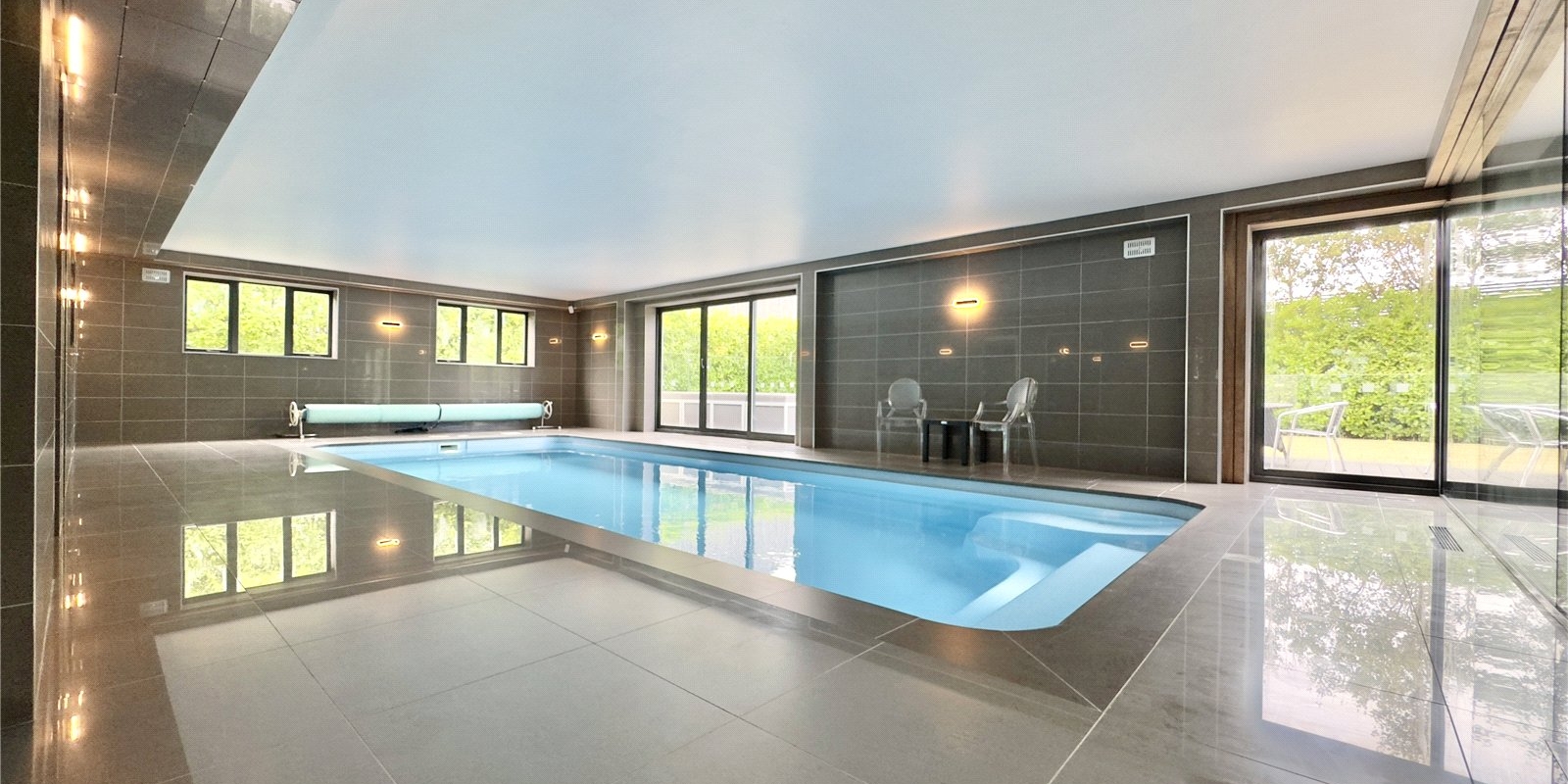 The leisure suite features a heated indoor swimming pool, steam room and gym – providing a true wellness retreat within the home. Further lifestyle highlights include a dedicated cinema room and a snug for more intimate relaxation, along with a second entertaining kitchen, ideal for hosting larger gatherings.