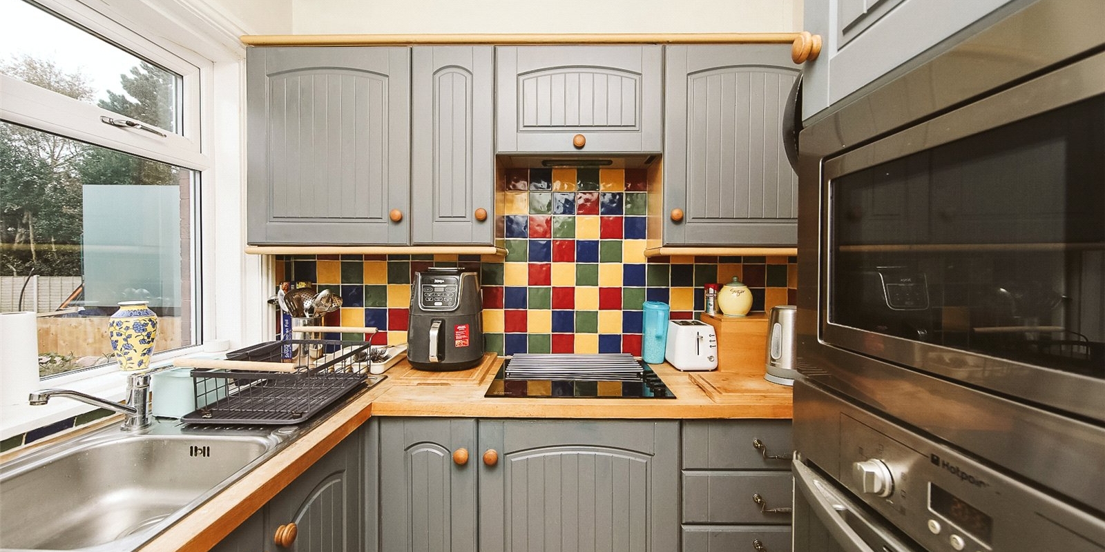 The kitchen offers a functional layout with good storage and worktop space, ideal for daily cooking and meal preparation.
