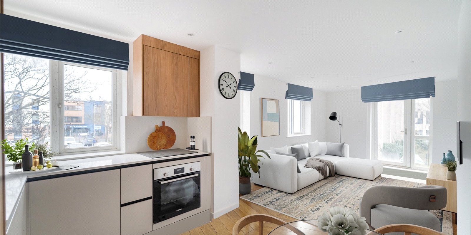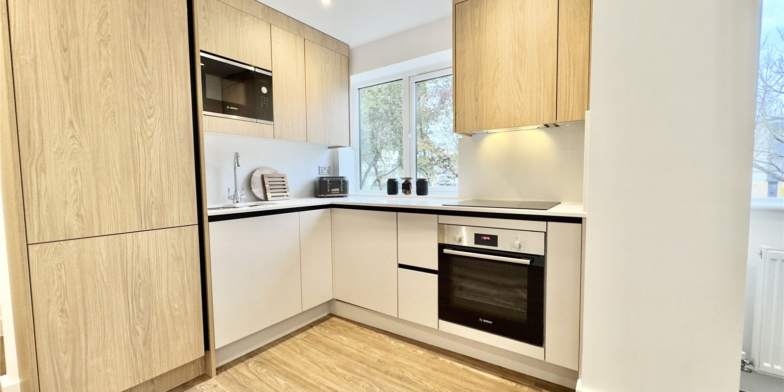 Number 8 located on the first floor, is an exceptional one-bedroom apartment with finishing touches that complement your lifestyle. Open plan kitchen, dining and living areas allow for a feeling of easy flow and space. Quartz worktops with matching upstands offer the perfect combination of style and practicality, complimented by premium Bosch appliances. For the bathroom, elegant design has been combined with practical solutions to ensure you start every day feeling refreshed. Bathrooms include contemporary sanitaryware with concealed fittings, heated towel radiators and luxurious baths. The design ethos is luxury-as-standard which is why you’ll also find hotel-style showerheads and designer tiles in every bathroom.