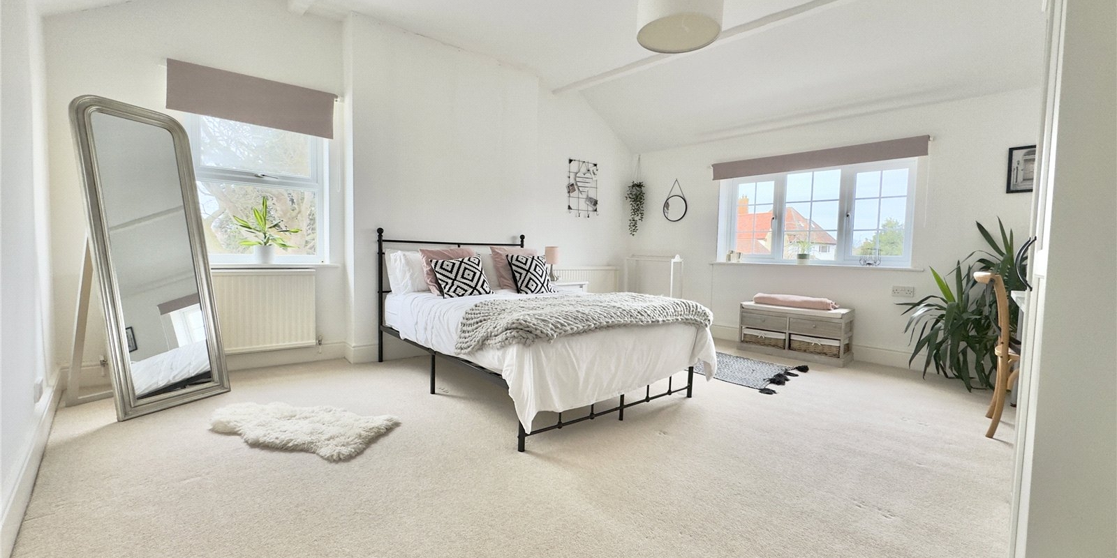 Upstairs, five well-proportioned bedrooms provide comfortable and flexible accommodation for family life. Each room enjoys excellent natural light, enhancing the sense of space throughout the upper floor. The Master bedroom benefits from its own en-suite shower room, while a spacious family bathroom serves the remaining bedrooms. Outside, the property is complemented by a mature and private rear garden, a peaceful retreat with established planting, lawned areas and patio spaces ideal for outdoor dining or relaxing in warmer months.
