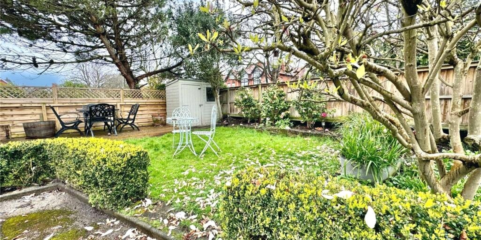The property benefits from the rare advantage of a private front garden and off-street parking, adding both kerb appeal and everyday convenience.