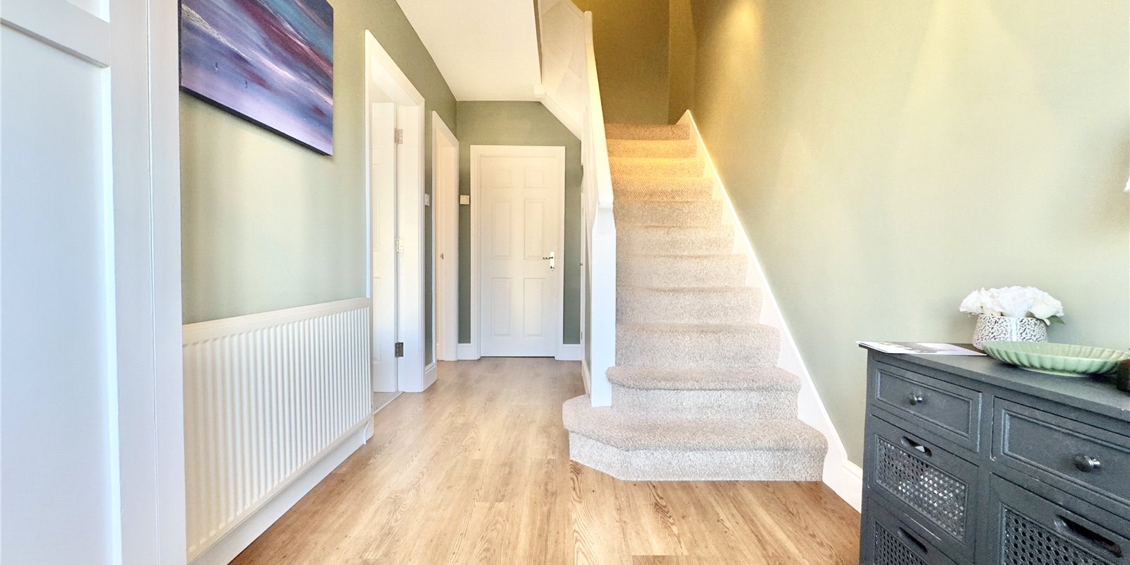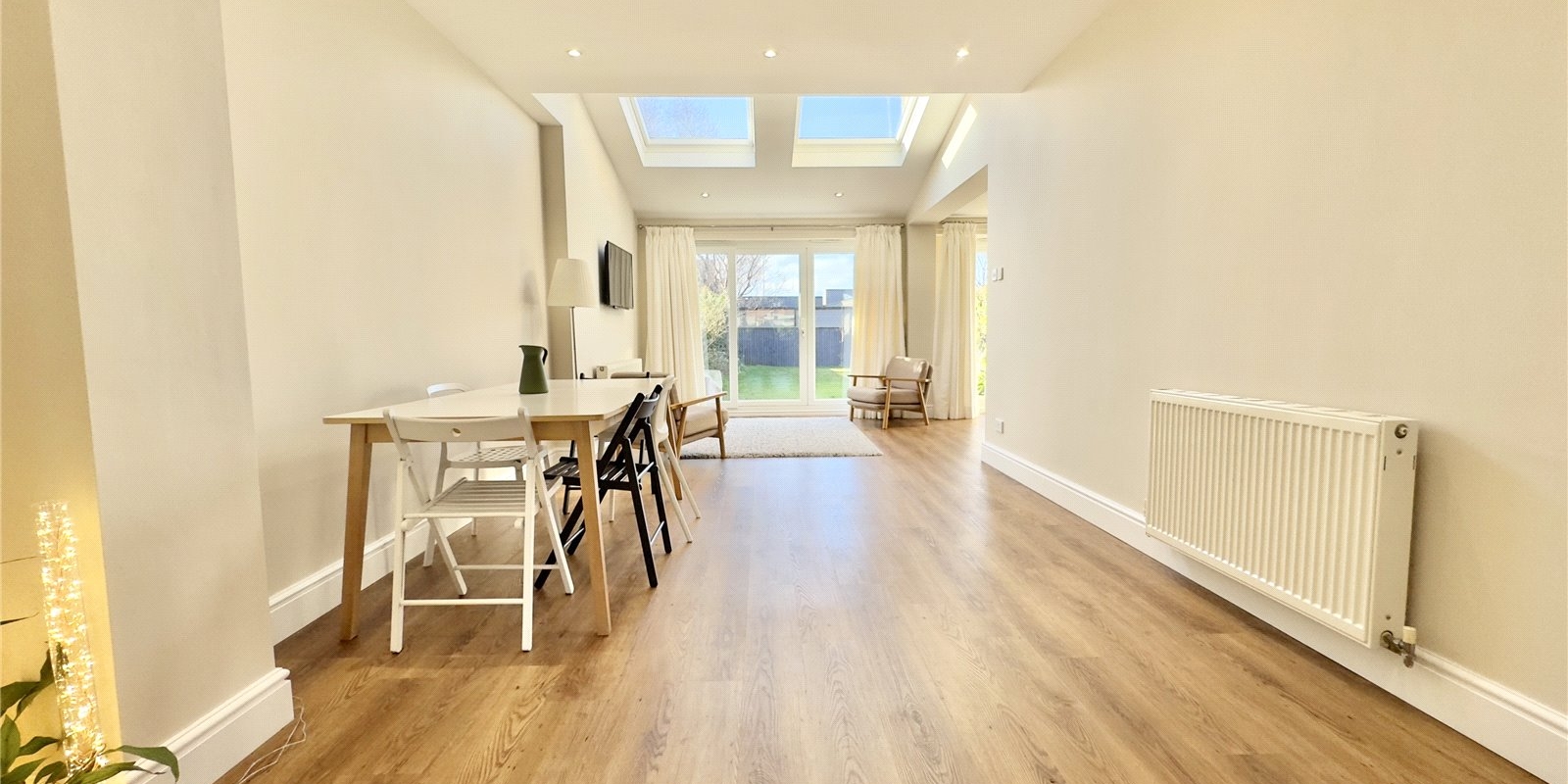 Outside, the large rear garden provides excellent space for relaxation and recreation, whilst ample parking to both front and side ensures convenience for multiple vehicles. The outdoor space truly complements the indoor living areas.