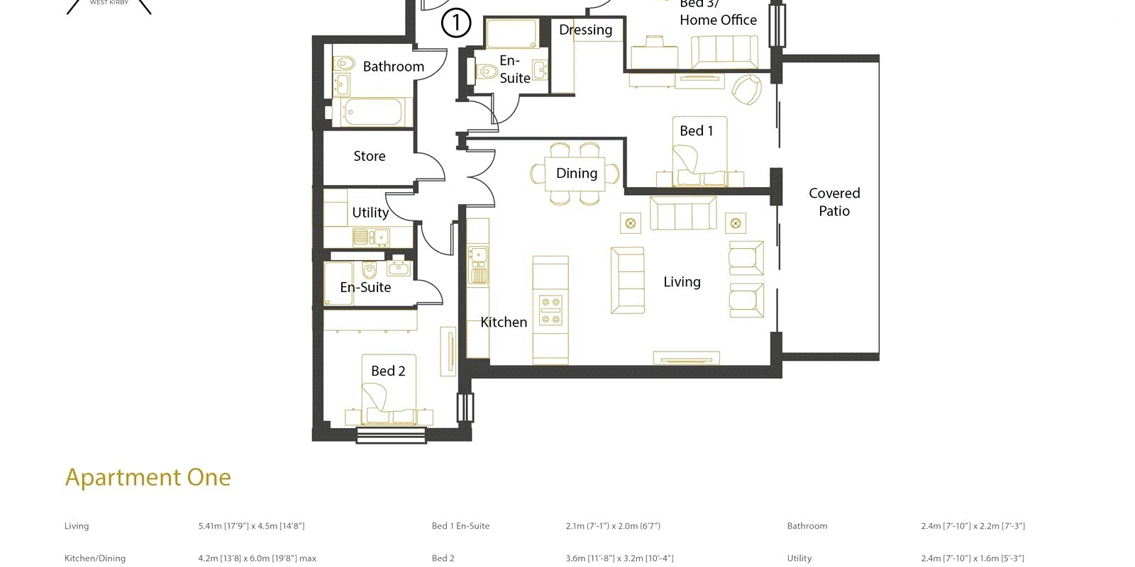 Apartment 1 is a beautifully crafted ground floor home, with underfloor heating throughout, comprising of three bedrooms, two en-suite bathrooms, separate family bathroom, kitchen, dining, living room, with a covered private terrace offering direct access to landscaped communal gardens. The third bedroom could also be used as a home office. Just moments from the Royal Liverpool Golf Club and West Kirby's town centre, enjoy a perfect blend of coastal calm, architectural elegance, and modern convenience all within walking distance of the village amenities and facilities.