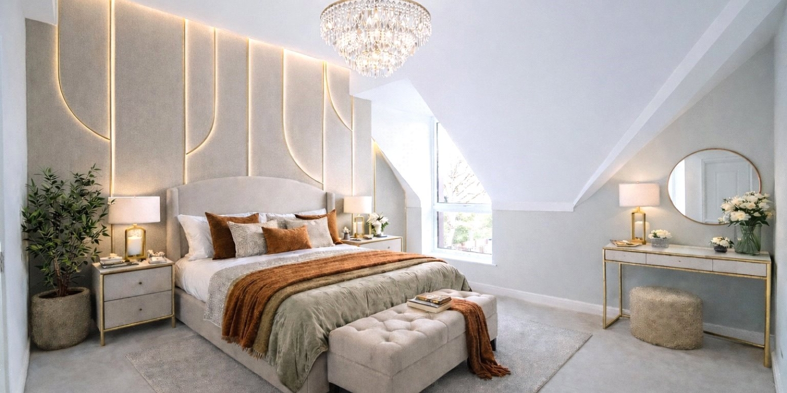 The bedrooms have been designed for rest and restoration, with generous proportions, abundant natural light, and, in select rooms, breathtaking coastal and countryside views. Walk-in wardrobes provide bespoke storage, while en-suites deliver a boutique hotel feel. The penthouse retreat, tucked away from the main living areas, offers a serene space to read, work, or relax in complete privacy, embodying quiet luxury and thoughtful design—a true sanctuary at the top of The Links.